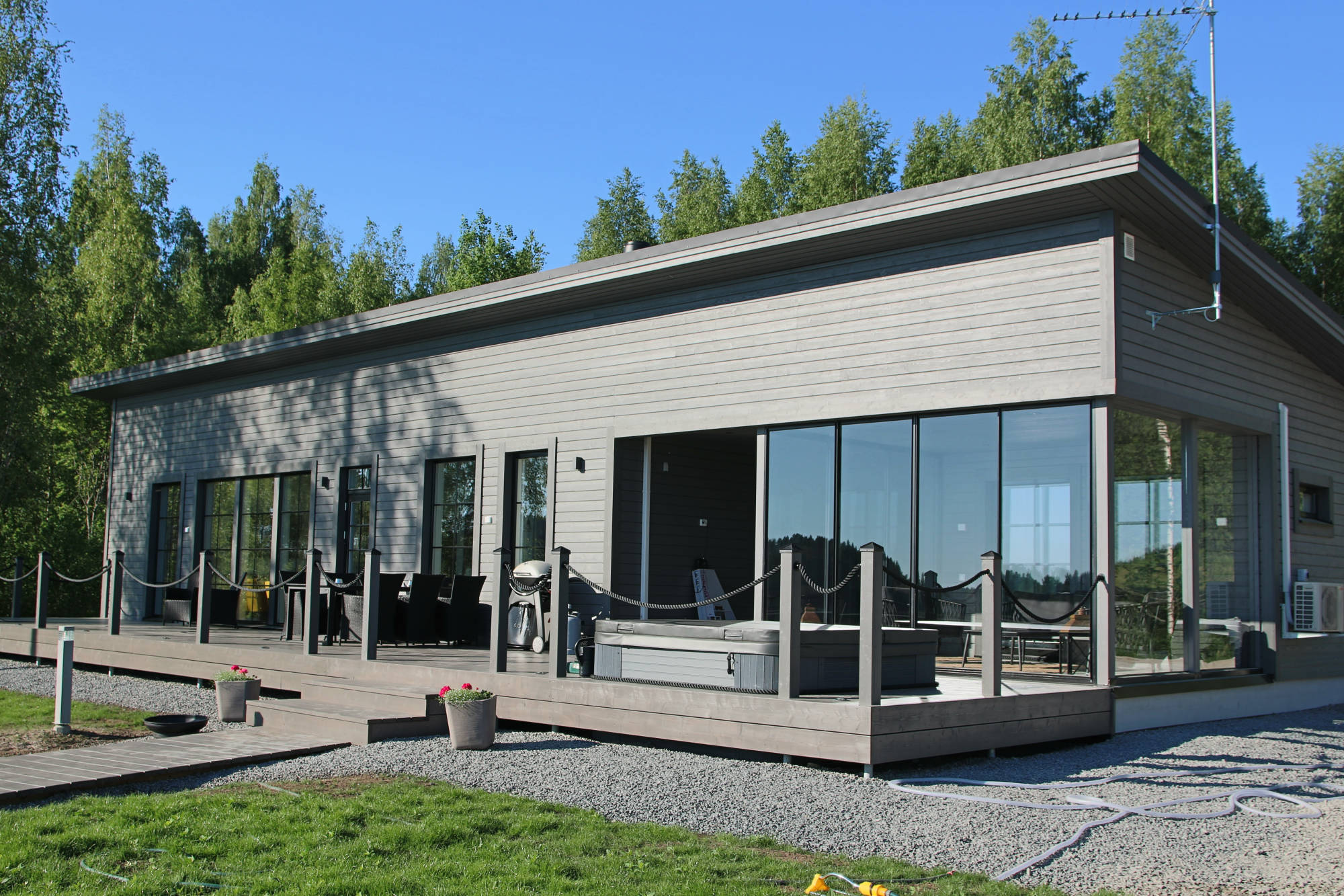 Todella hienot, identtiset 150 neliön villat kaikkine omakotitalon mukavuuksineen majoittaa jopa 9 hengen seurueen. Villojen suuri sauna ja upea ulkoporeallas jättiterassilla järven rannassa takaa rentouttavat lomaillat.