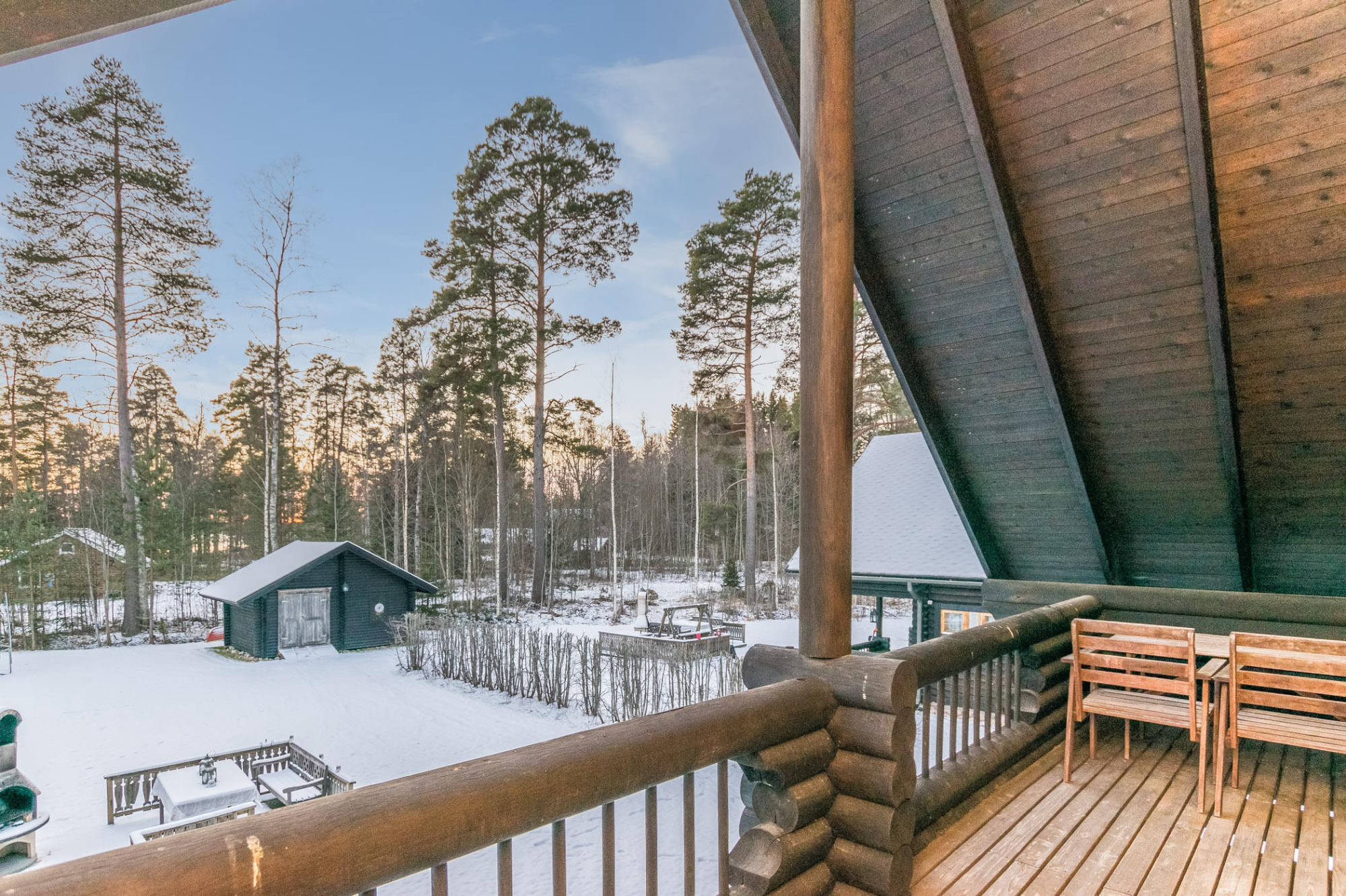 Huvilassa on luiska pyörätuolilla ja huonosti liikkuville. Alakerrassa on yksi makuuhuone, yläkerrassa kaksi. Olohuone avautuu parvelle kauniisti tuoden huvilaan valoa. Yläkerrassa on katettu parveke, jossa voi mm. juoda aamukahvinsa täysin omassa rauhassa.