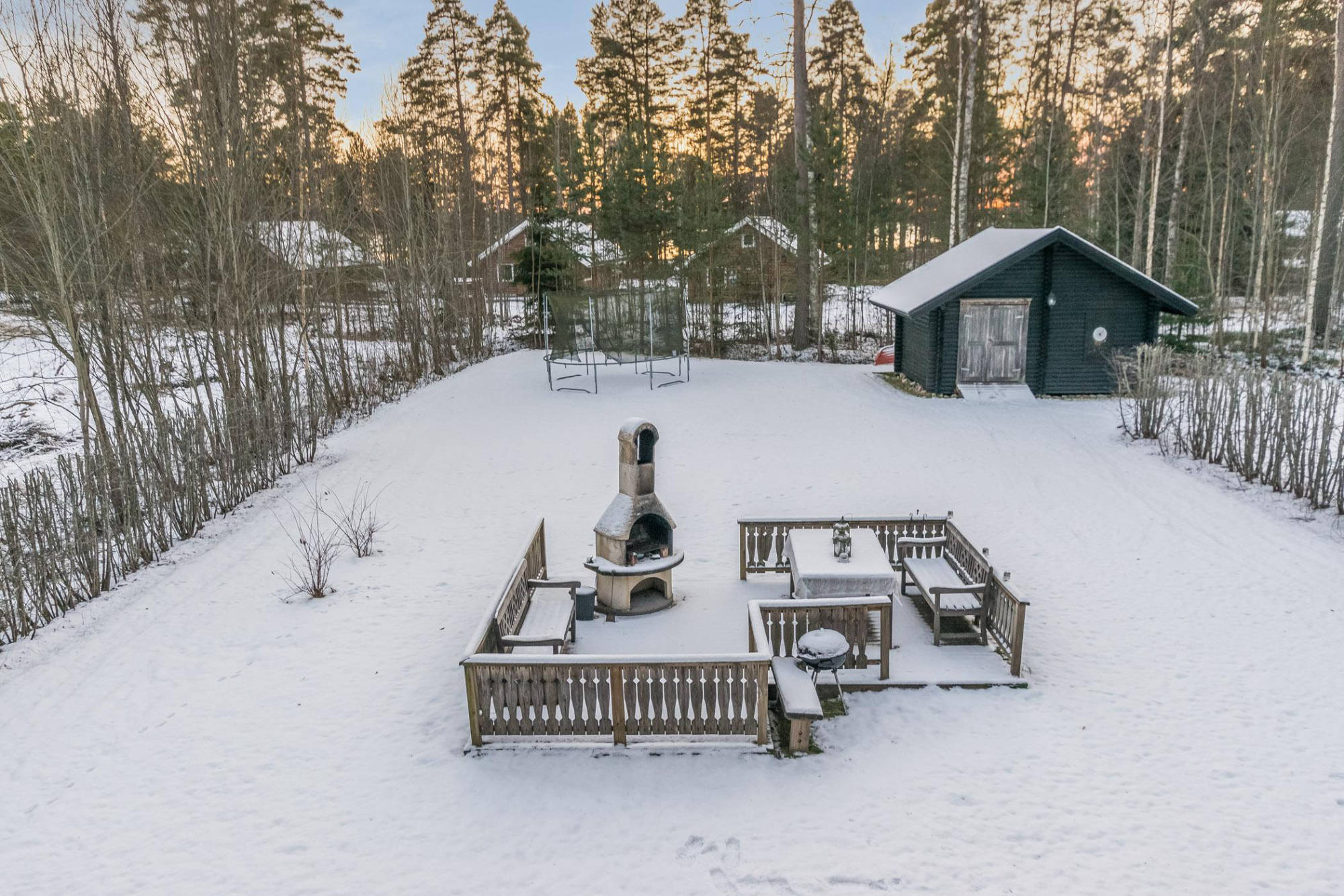 Huviloista n. 200m päässä on mm. tenniskenttä, suuri, matala hiekkaranta ja rantalentopallokenttä, ja ravintola. Kalamiehille tiedoksi, rannasta löytyy huviloidemme yhteisessä käytössä oleva soutuvene. Huom kalastuslupa virvelillä sisältyy mökin hintaan!