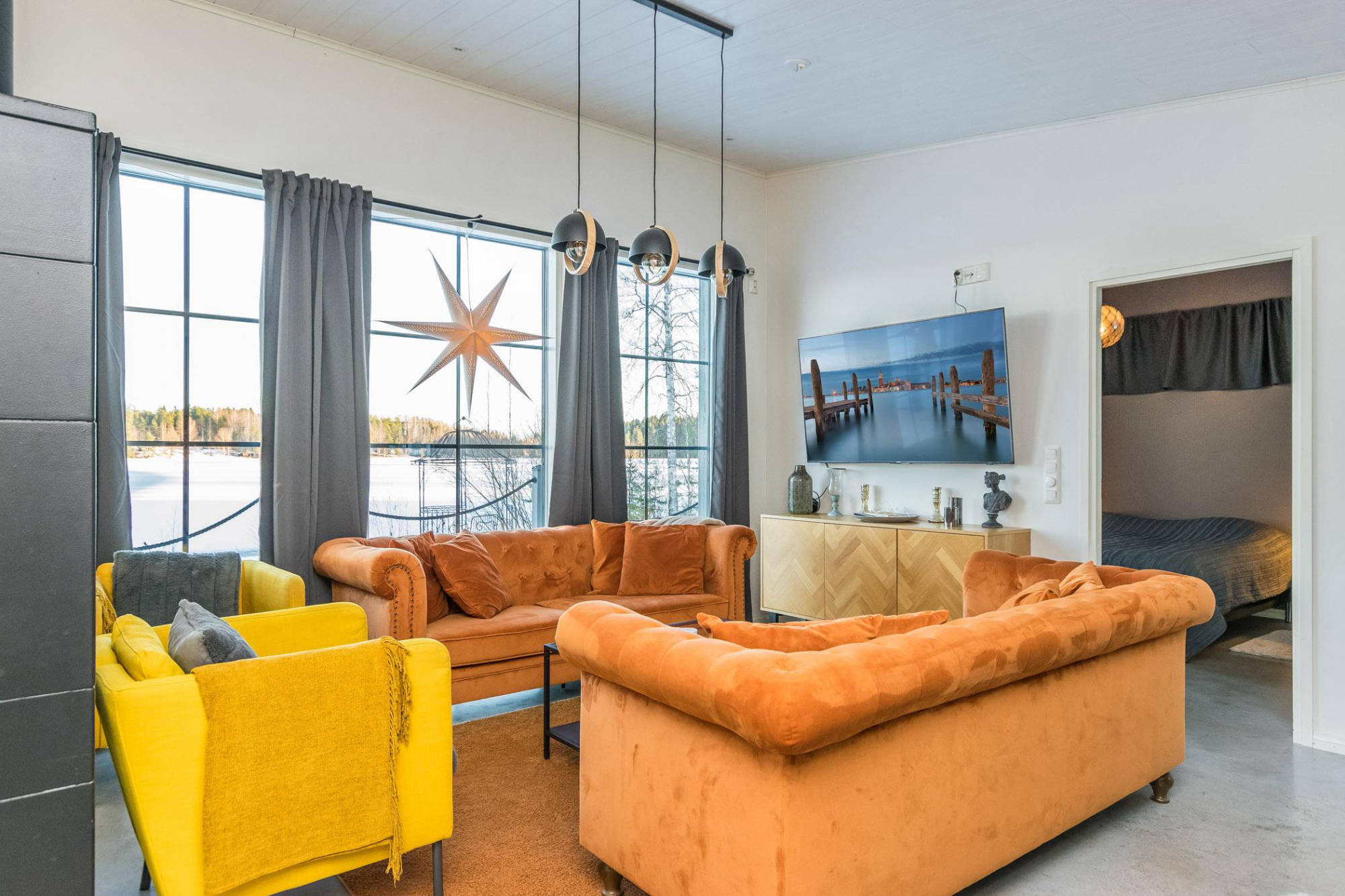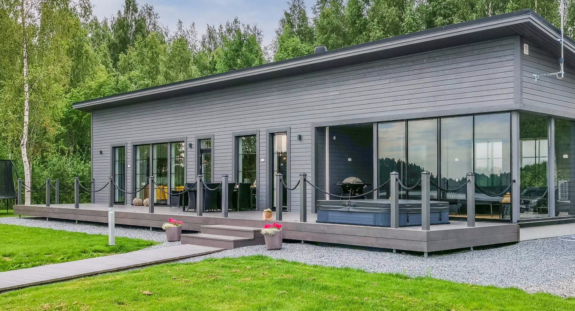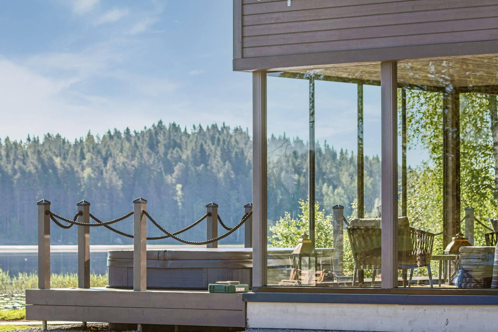 Todella hieno 150 m² villa kaikkine omakotitalon mukavuuksineen majoittaa jopa 9 hengen seurueen. Villan suuri sauna ja upea ulkoporeallas massiivisella 80 m² terassilla järven rannassa takaa rentouttavat lomaillat.