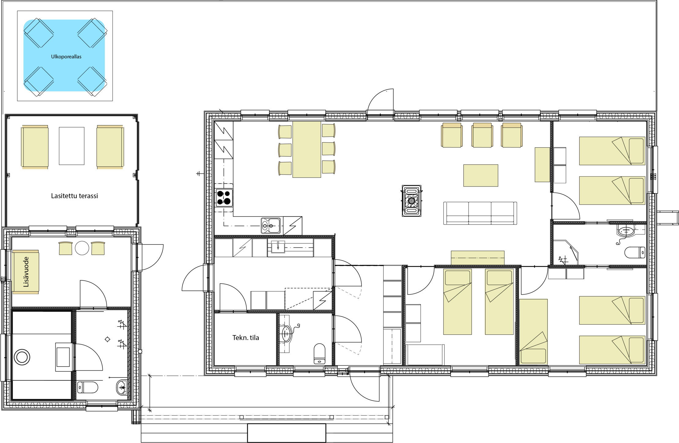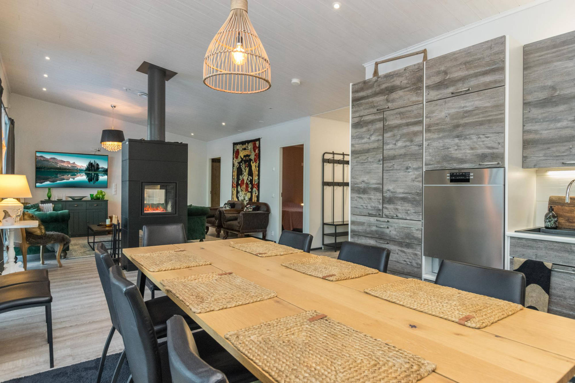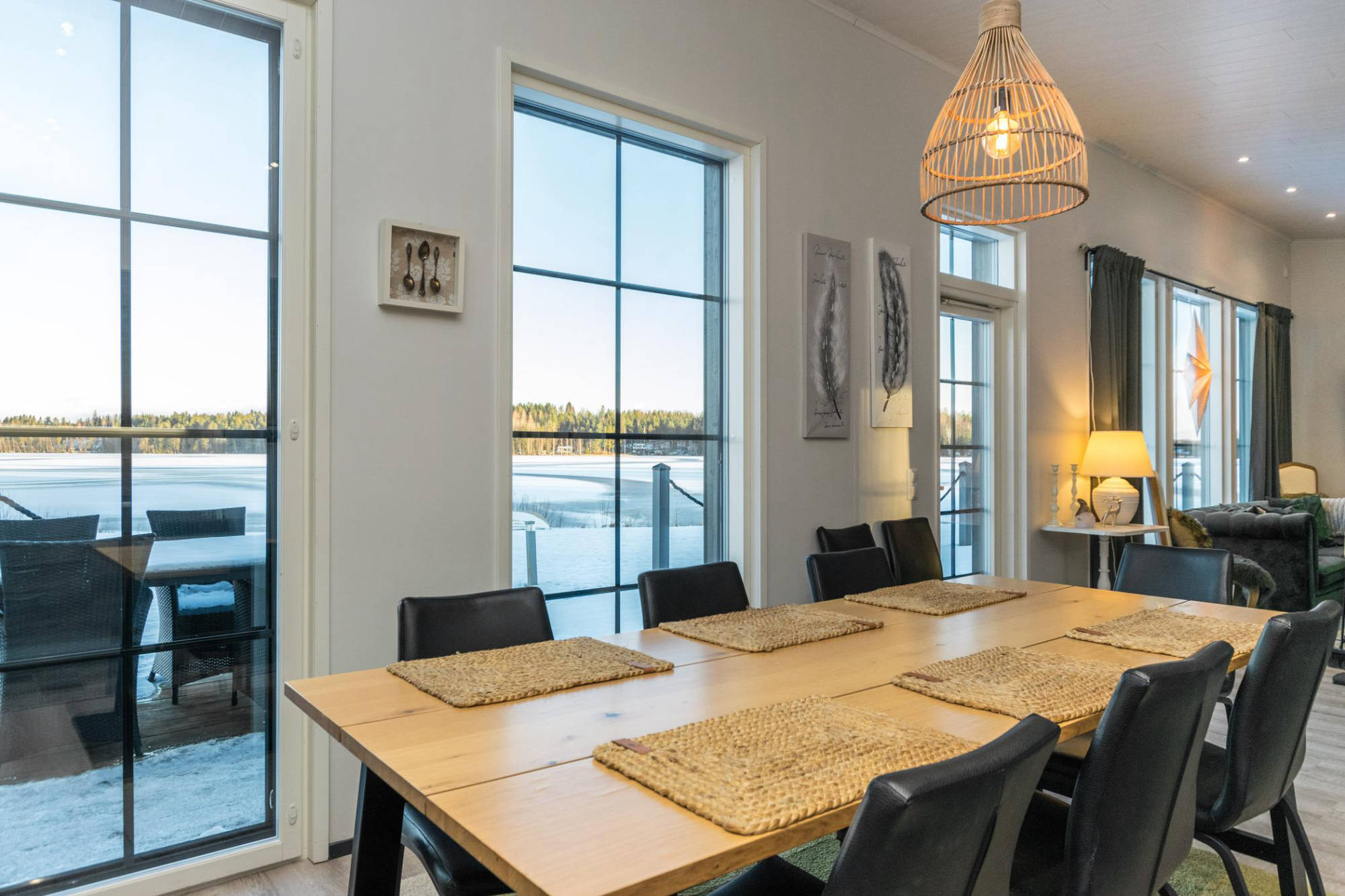 Todella hieno 150 m² villa kaikkine omakotitalon mukavuuksineen majoittaa jopa 9 hengen seurueen. Villan suuri sauna ja upea ulkoporeallas massiivisella 80 m² terassilla järven rannassa takaa rentouttavat lomaillat.