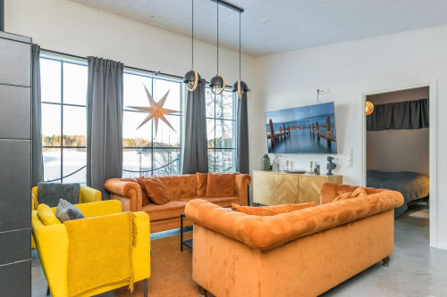 Todella hienot, identtiset 150 neliön villat kaikkine omakotitalon mukavuuksineen majoittaa jopa 9 hengen seurueen. Villojen suuri sauna ja upea ulkoporeallas jättiterassilla järven rannassa takaa rentouttavat lomaillat.